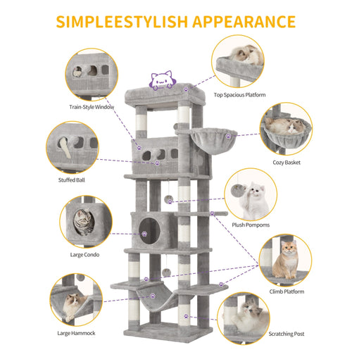 XXL Katzenbaum mit Plattformen Höhlen und Kratzbrett -